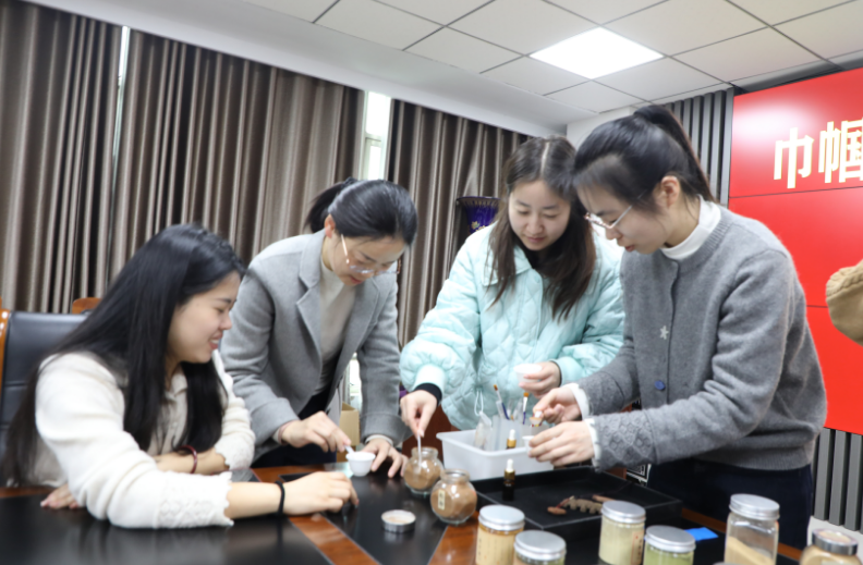 在实操环节,女职工们认真学习香料配比、和泥、醒香、压模、修边等工序,耐心细致、默契协作,将对健康的期许、对生活的热爱融入指尖。一块块造型雅致、香气清和的中医药香牌陆续成型,既承载着传统非遗技艺之美,也彰显了卫健女性心灵手巧、积极向上的精神风貌。大家在沉浸式体验中放松身心、增进交流,现场氛围温馨热烈、其乐融融。