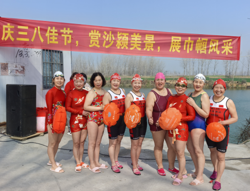 “我游泳,我健康、我快乐”。春日的沙颍河畔暖意渐浓,女泳友们精神饱满,大家身着整齐的游泳装备,欢呼雀跃。