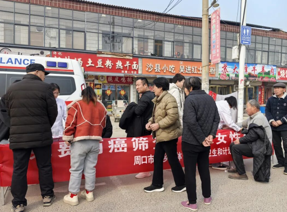 活动现场,医务人员秉持耐心细致的服务态度,逐一为群众免费测量血压、细致询问身体状况,结合“两癌”发病规律、常见症状及预防要点,用通俗易懂的语言讲解健康防护知识,反复提醒群众养成定期体检的良好习惯,若出现身体不适务必及时就医,做到防患于未然。同时,工作人员通过悬挂宣传条幅、发放“两癌”防治宣传册、现场答疑解惑等多种形式,重点面向育龄女性、适龄妇女,深入宣讲国家免费“两癌”筛查民生政策,详细解读筛查流程、范围、注意事项及重要意义,切实提升群众对“两癌”防治的认知水平和自我保护意识。