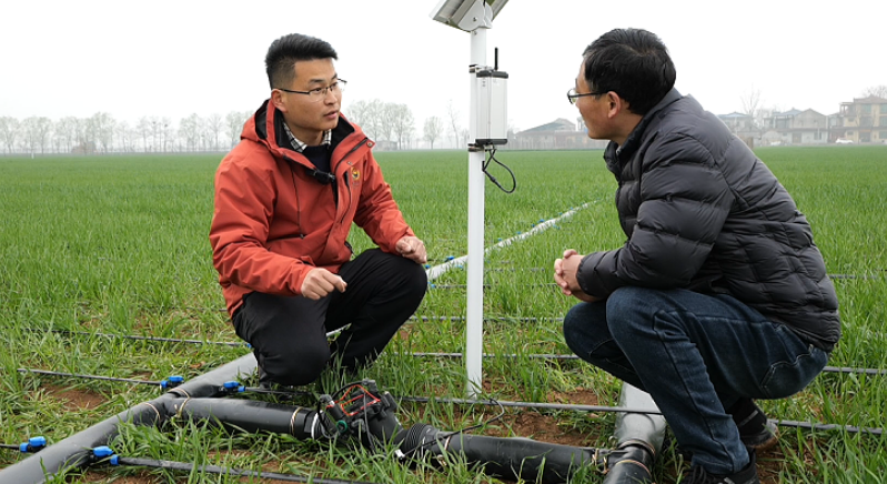 周口农服农艺师张文杰:“地里面装的有墒情检测仪,我们不同的田块,它会自动识别哪些地方旱、哪些地方不旱,旱的地方就多浇,不旱的地方就少浇。这种浇水追肥模式,肥料能够更精准地直接到达根系,小麦吸收率高,效果更好,我们经过大面积的试验验证这种方式能够在小麦种植生产中亩均增产150到200斤。”