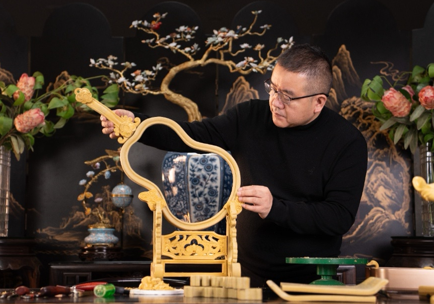 王疆华是川汇区人,现担任香港周口商会副会长,此次携作品回归家乡办展,心情格外激动。他自中国国家画院深造后,师承中国国家博物馆书画院院长杨军研习书画,又拜传统瓷器工艺大师佘日炯钻研瓷艺,三十余年间遍访世界各大博物馆,目睹流落海外的中国文物后,萌发了“让瓷器成为文明对话使者”的创作理念。他说:“这些作品不仅是器物,更是连接古今、沟通中外的文化密码——琅钰瓷以金丝镶嵌展现富丽堂皇,归缮器通过残缺修补传递乡愁记忆,聚禄珏则以传统纹样凝聚福禄寿喜的美好祈愿。”