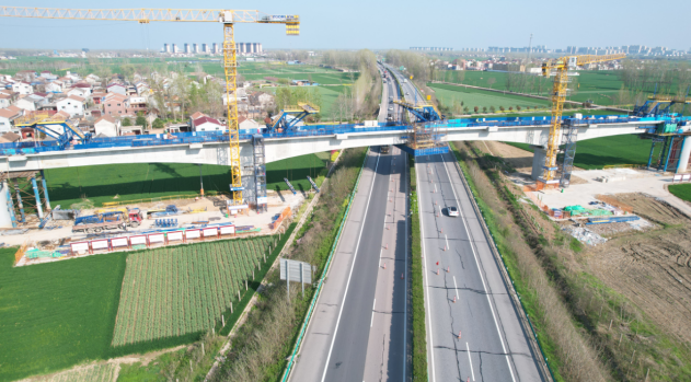 4月2日,周口中心港集疏运铁路专用线建设现场一派繁忙。工人们在焊接声与切割声的交织中绑扎钢筋,为桥梁合龙作最后冲刺。该项目自漯阜铁路新开黄寨站接轨,下穿大广高速,跨越宁洛高速及G329国道,设黄寨站和周口港站,到达港口后分别设立中心作业区和范营作业区两个装卸场。项目建成投运后,周口中心港区与漯阜线、京广线、京九线等国家干线铁路贯通连接,真正打通“铁水”联运的“最后一公里”。目前,该项目控制性工程——跨宁洛高速连续梁即将完工,计划4月5日合龙。同时,跨329国道桥梁工程也在快速推进。
