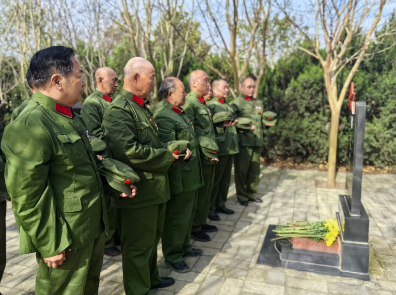 上午9时,活动在雄壮的国歌声中拉开帷幕。全体人员面向巍峨的烈士纪念碑肃立,依次瞻仰烈士纪念碑和烈士墓,并向烈士敬献鲜花。随后,大家齐聚烈士墓前,静静聆听年过六旬的参战老兵马绍领带来的“微党课”。