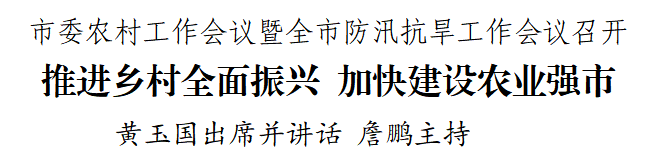 黄玉国指出,作为传统农业大市,“三农”工作是我们的基本盘,也是优势所在、潜力所在、底线所在。要坚决贯彻习近平总书记关于“三农”工作的重要论述和重要指示精神,紧扣省委“四强两高”基本方向,毫不放松抓好农业生产,大力发展现代农业,全面提升农业农村现代化水平,确保整体工作走在全省前列、特色工作走在全国前列。