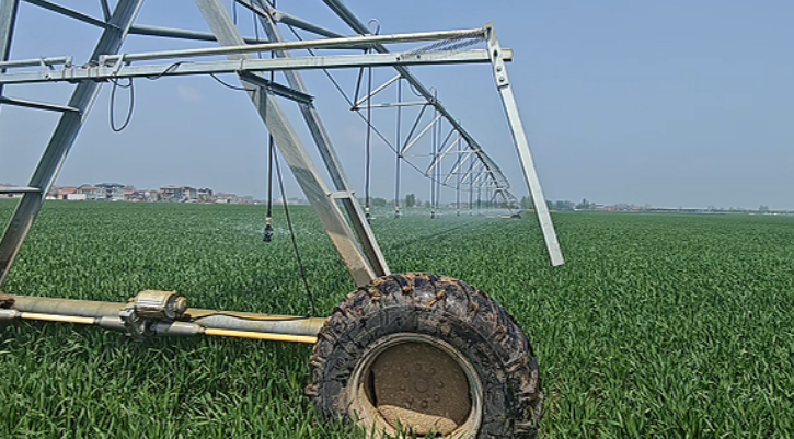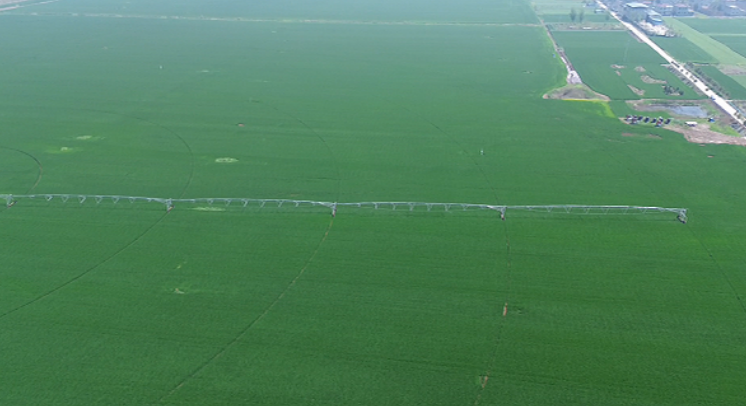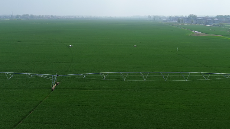 科技赋能春管,不仅体现在实验室、试验田的科研攻关中,更在广袤的田地里。在周口国家农高区周口农服托管的农田里,智能无人机、节水喷灌机等新型农业装备轮番上阵,搭载AI智能系统的无人机在小麦上空精准喷施肥料,300米长的指针式节水灌溉设备在田间缓缓移动,均匀洒水,将刚撒下的肥料快速融化,实现水肥同步吸收,大幅提升春管效率。