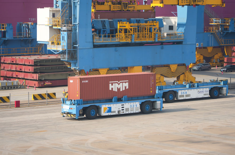 青岛港全自动化集装箱码头通过采用全自主国产化管理系统、船舶自动系泊设备、全无人化集装箱装卸设备等先进设施装备,实现了安全高效的装卸作业。