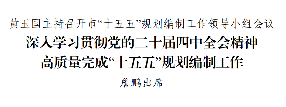 本台讯 11月12日,市委书记黄玉国主持召开市“十五五”规划编制工作领导小组会议,强调要深入学习贯彻党的二十届四中全会精神和习近平总书记在河南考察时重要讲话精神,切实把思想和行动统一到党中央决策部署和省委要求上来,深入研究、科学谋划,确保高质量完成我市“十五五”规划编制工作。市长詹鹏出席。