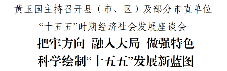 本台讯 12月16日,市委书记黄玉国主持召开县(市、区)及部分市直单位“十五五”时期经济社会发展座谈会,深入学习贯彻习近平总书记在我省考察时重要讲话精神和关于河南工作的重要论述,认真贯彻落实党的二十届四中全会、中央经济工作会议和省委十一届十次全会精神,广泛听取意见建议,深入研究重要问题,确保制定出符合发展规律、顺应人民期盼、具有周口特色的高水平规划,更好引领现代化周口建设行稳致远。