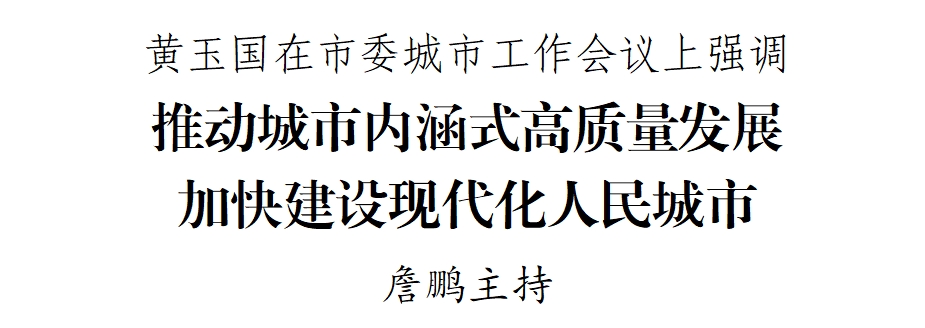 黄玉国要求,要坚持人民至上,加快建设现代化人民城市。要优化功能品质,有序推进老城区改造,健全新城区功能,加快构建房地产发展新模式,强化就业、医疗、社会保障等公共服务供给,持续优化城市基础设施布局,让城市更宜居。要加快动能转换,强化科技创新、产业创新、体制创新协同,一体推进教育科技人才事业发展,着力培育新质生产力,深化改革、盘活要素、创新机制,优化城市开放环境和服务,打造对外开放新高地,让城市更创新。要赓续历史文脉,加强城市设计、塑造特色风貌,持续抓好国家历史文化名城申报工作,巩固拓展全国文明城市创建成果,统筹做好“以文化人、以文惠民、以文兴业、以文塑城”四篇文章,让城市更文明。要提升治理能效,深化“党建+网格+大数据”治理模式,建强用好一体化信息系统和综合智慧平台,用“绣花功夫”推动城市精细化治理,让城市更智慧。要推动绿色转型,坚决抓好污染防治,调整优化能源结构,倡导低碳生活方式,让城市更美丽。要筑牢安全底线,实施城市基础设施生命线安全工程,建立完善防洪排涝体系,加强房屋安全管理和应急能力建设,深化安全生产治本攻坚,让城市更韧性。