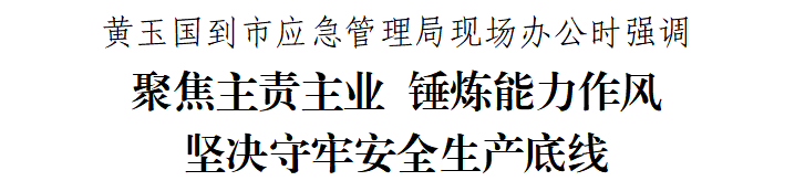 本台讯 12月29日,市委书记黄玉国到市应急管理局现场办公,强调要深入贯彻习近平总书记关于安全生产和应急管理的重要论述,认真落实党中央和省委决策部署,按照市委五届九次全会暨市委经济工作会议要求,强化底线思维、极限思维,抓实抓细安全生产工作,把“时时放心不下”的责任感转化为“事事心中有底”的行动力,以高水平安全保障高质量发展。