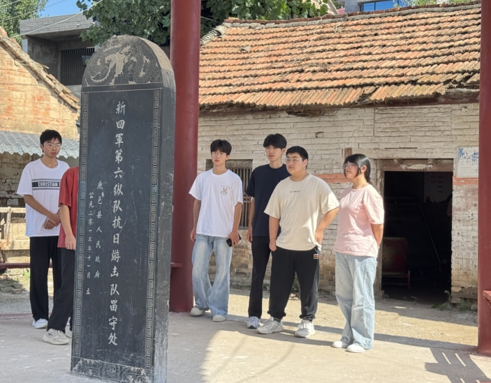 活动当天,学生们怀着崇敬的心情抵达红色教育基地。在鹿邑县王皮溜镇刘大庄村新四军第六纵队游击队留守处旧址,学生们怀着崇敬之情,在留守处纪念碑前整齐列队,齐唱《我们是共产主义接班人》,激昂的歌声在这片红色热土上久久回荡。