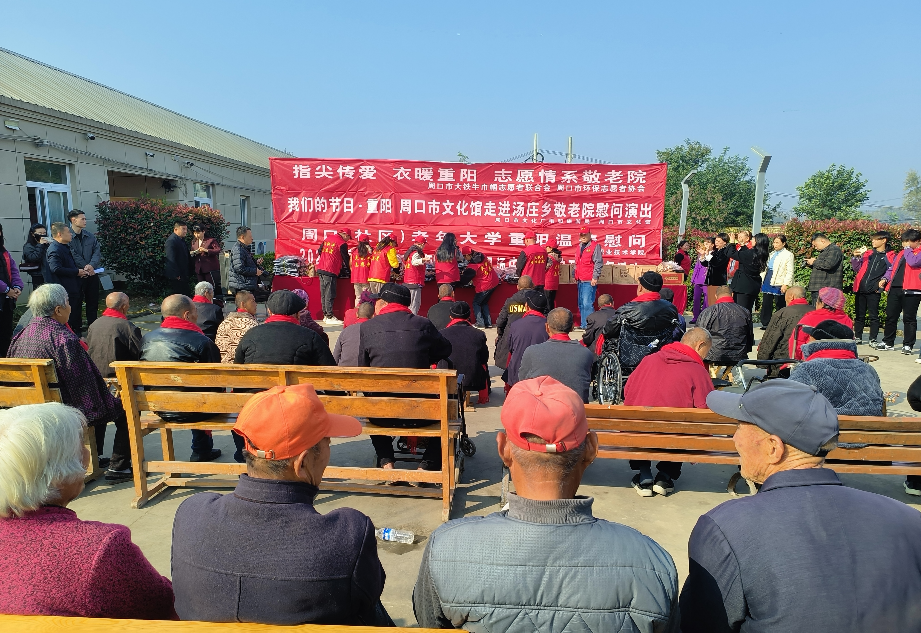 本台讯 10月28日,重阳节前夕,周口市商水县汤庄乡敬老院内欢声笑语不断。周口市大铁牛巾帼志愿者联合会携手周口市文化馆、周口市第二高级中学师生,共同开展“情暖重阳·爱满金秋”主题公益活动,通过捐赠棉衣、文艺表演、生活照料等形式,为敬老院40位老人送去节日关怀,弘扬中华民族尊老敬老的传统美德。