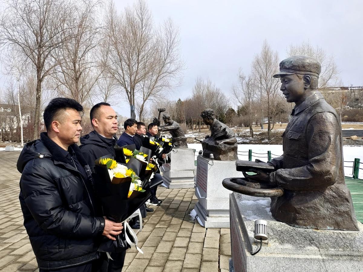 面对张思德、董存瑞、黄继光、邱少云、雷锋、苏宁、李向群、杨业功、林俊德、张超等10位英模雕塑,全体人员庄严肃立,追思英雄的丰功伟绩,了解英雄的先进事迹。在主持人的主持下,大家依次完成擦拭雕塑、敬献鲜花、全体默哀、致辞等祭奠环节。