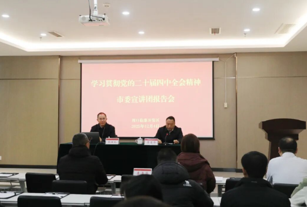 本台讯 12月4日,学习贯彻党的二十届四中全会精神市委宣讲团成员,周口职业技术学院党委副书记、工会主席郭汝礼到周口临港开发区向辖区企业干部职工作宣讲报告。