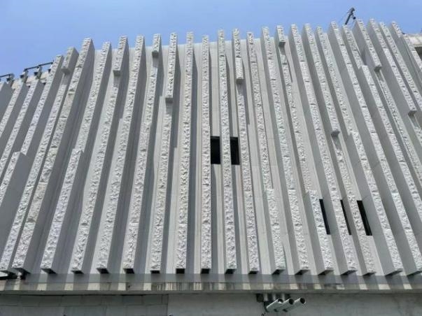 整体吊装工艺体系,实施所有石材板块模块化设计、工厂化生产和地面预组装;应用BIM放样,实现连接件精准定位;采用安全吊装技术,开发专用吊具,实现吊装效率大幅提升。