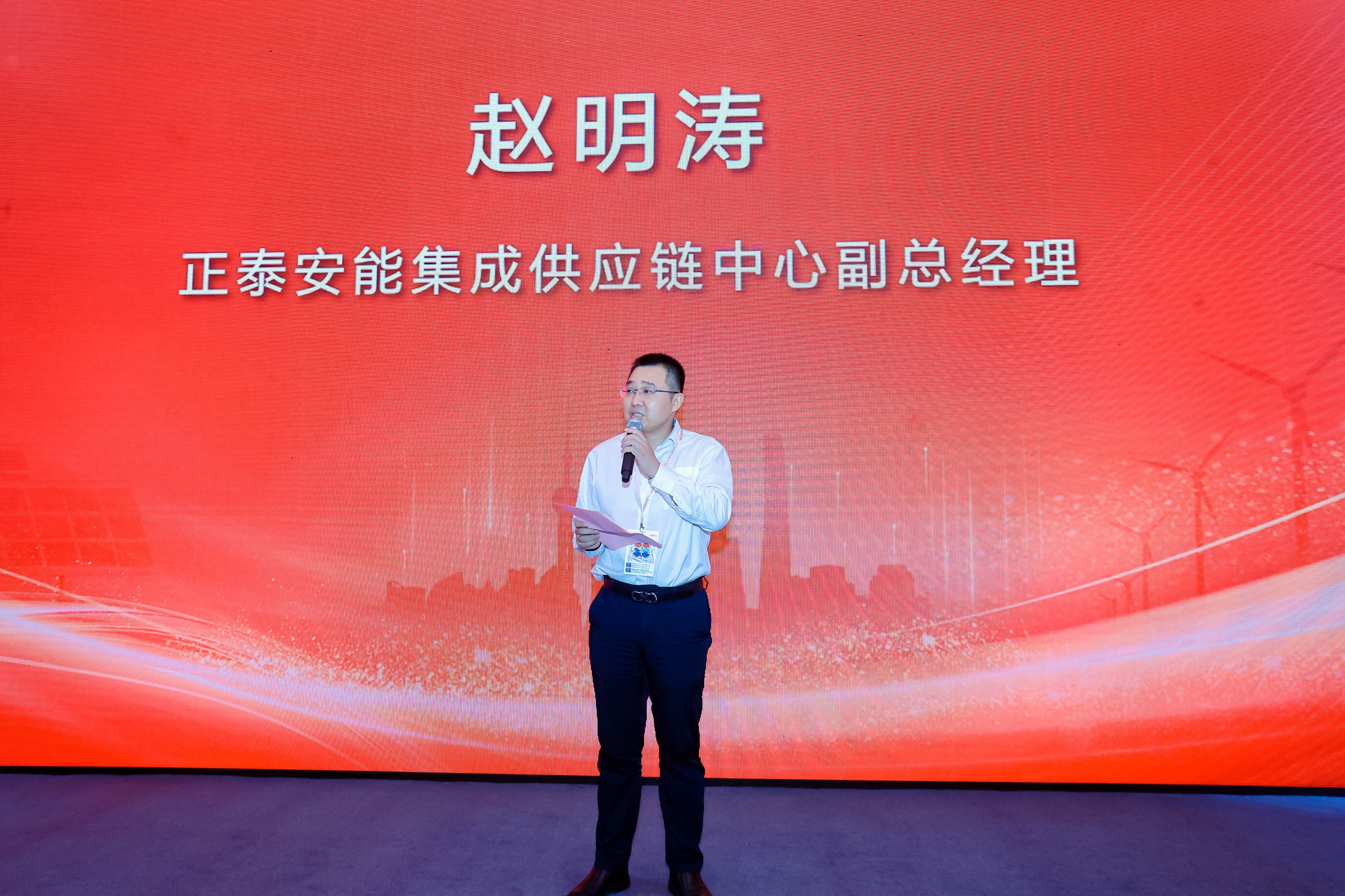 正泰安能集成供应链中心副总经理赵明涛代表签约并分享了公司供应链发展的核心战略。他表示:“供应链的未来属于开放者、协同者、创新者。正泰安能以全链条合作为基石,以绿色创新为引擎,打造更具韧性、更可持续性的供应链生态,真正实现‘韧性为基,生态共赢’!”