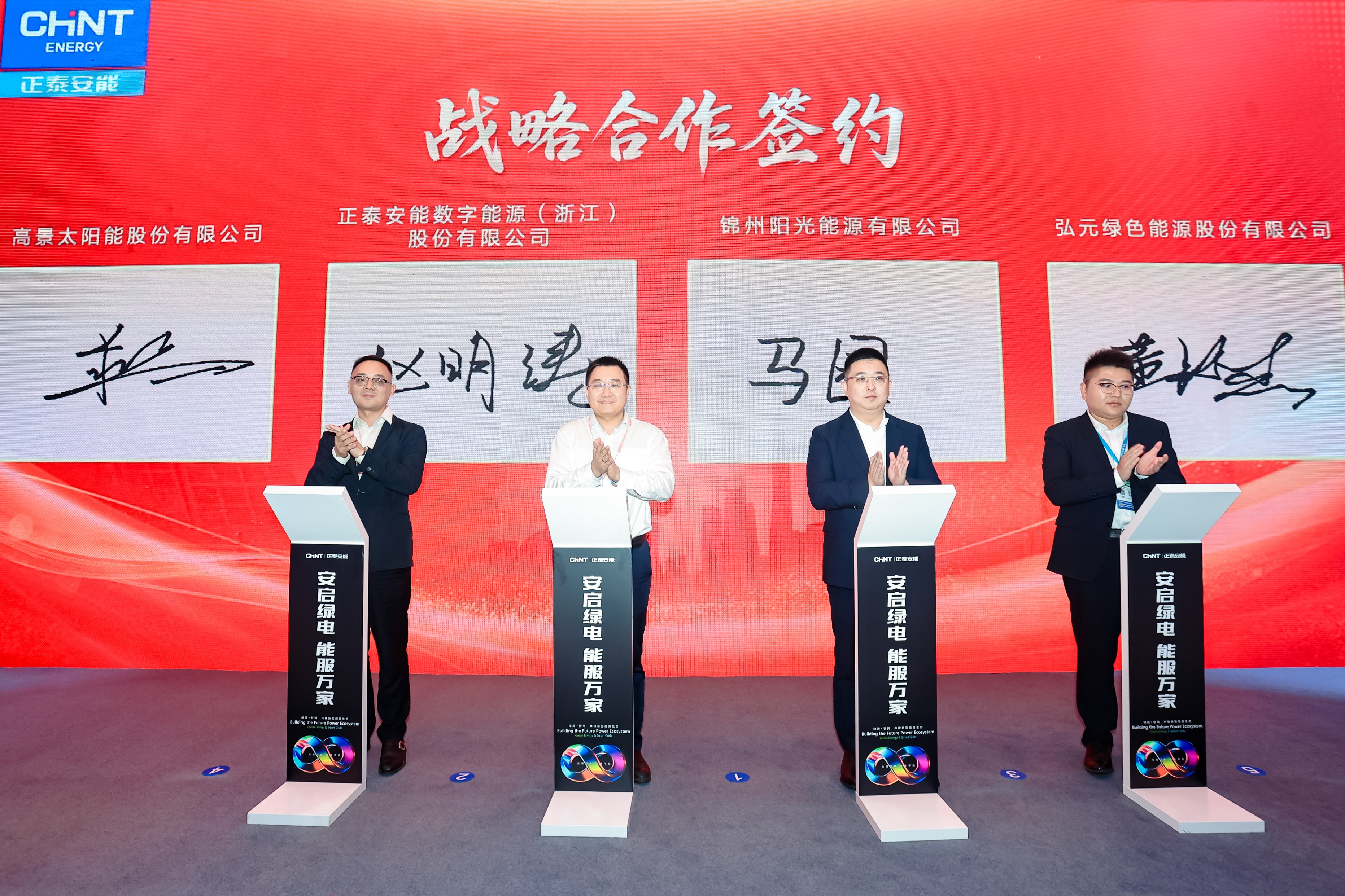 6月11日下午,正泰安能与锦州阳光能源有限公司、高景太阳能股份有限公司、弘元绿色能源股份有限公司签订合作协议。在既往良好合作的基础上,进一步深化伙伴关系,推动多方价值共同提升。