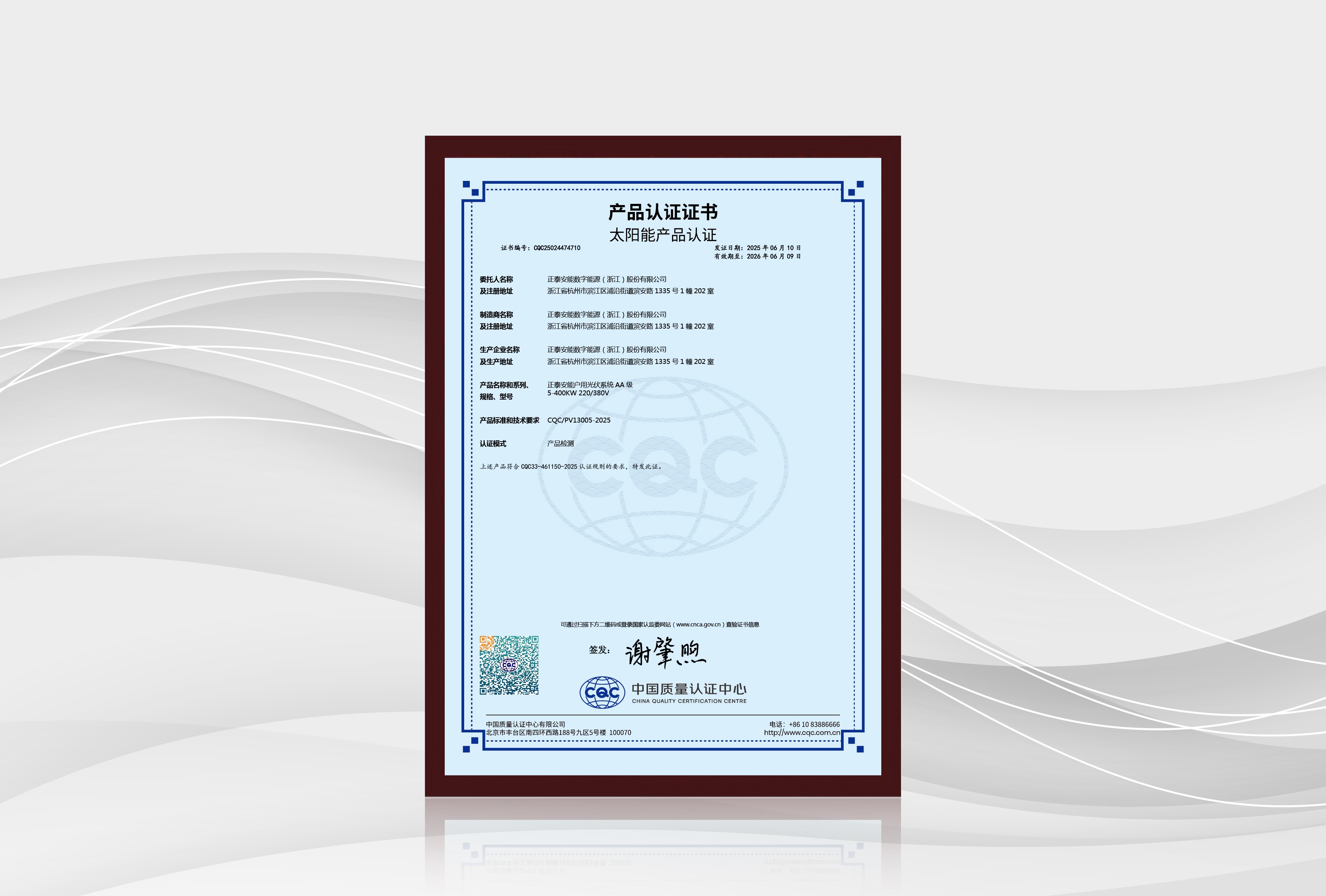 本次SNEC展会,正泰安能户用光伏系统通过分布式光伏系统分级认证,获颁CQC太阳能产品认证AA级证书,成为首批获此认证的企业,系统功能及性能、系统设备及部件、系统安装质量均获得权威认可。