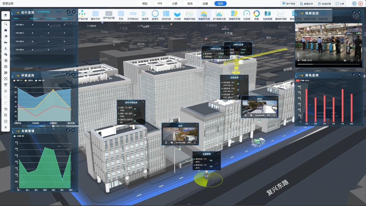以用数字资产连接数字世界与物理世界为目标,实现资产的孪生数字化重建,利用Vothing平台能力,可以集成数字资产创建中的各类数据,包括模型、图档、IOT、GIS数据,快速构建面向工程全生命期应用的孪生资产底座,通过平台的资产映射功能,建立数字资产对象,重建资产拓扑,实现孪生数字资产与模型、构件、IOT设备的链接和关联,在此基础上,利用Vothing中丰富的数据标签、BI图表模板和低代码开发环境,让用户可以快速实现孪生应用的搭建。