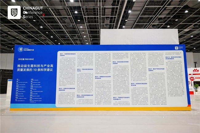 针对当下备受瞩目的时兴与新兴干预手段的健康可持续发展,南京医科大学附属第二医院张发明教授、内蒙古农业大学张和平教授、中国科学技术大学朱书教授与热心肠研究院领衔,联合50余位业内专家撰写完成三大共识建议中文预览版——《推动益生菌科技与产业高质量发展的10条科学建议》《促进粪菌移植转化应用与可持续发展的10条科学建议》《促进活体生物药产业发展的10条科学建议》,以展板形式在会上发布。正式文章已安排投稿,敬请期待。