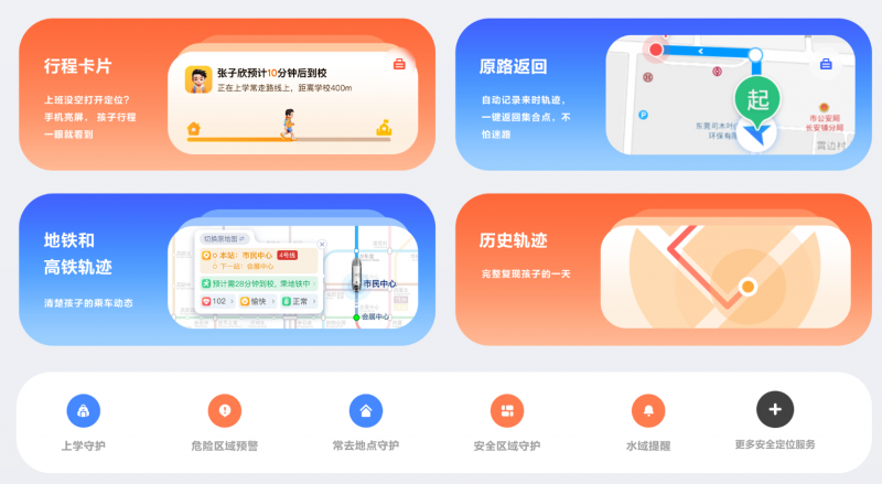 这款手表的定位能力不止以上这些,比如马路级定位能让家长随时看到孩子过马路的实况以及行动轨迹,还有孩子是几点到家的,去朋友家玩了多长时间以及这一天都去了哪也能知道,有了如此强大的监护能力,孩子上下学以及外出让家长更安心。