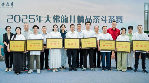 当球鞋摩擦地板的锐声在赛场回荡,场馆一楼的大佛龙井茶文化展示区正氤氲着江南诗意。8组大佛龙井展位依次排开,青瓷茶盏陈列着产自海拔350米以上生态茶园的精品茶叶,数字化溯源确保每杯茶都可追至一级水源地的源头产地,让消费者喝得放心。选手们在比赛之余纷纷来到不同展位进行品鉴,以乒乓球为“选票”为心仪的茶叶投票。经专业评审与大众投票加权,八家茶企分获“探花茶”、“榜眼茶”、“状元茶”的美誉。与此同时大佛龙井斗茶主题打卡墙上,“等茶来不如追茶去”等语录与茶山剪影相映成趣,成为热门留影区域,为赛事增添了文化韵味,在动静间诠释“一球一茶”的赛事理念。
