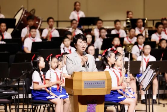 郝校长首先向中央音乐学院表演艺术中心给予的大力支持表达诚挚感谢,并详细介绍了学校的发展特色。作为海淀区“四个十”精品学校,羊坊店第四小学在五十七中教育集团的赋能下,以“五育融合”为引领,创新性地构建“美育 + 思政”育人模式。通过将中华优秀艺术作品巧妙融入思政教育,开展唱、画、演、写等丰富多样的实践活动,营造出“以美育人、以文化人”的良好校园生态。这一模式不仅取得显著育人成效,更推动学生乐团实现了跨越式发展。郝校长表示,此次管乐专场音乐会既是对过往成绩的总结,也是对未来发展的展望,并衷心预祝演出圆满成功。