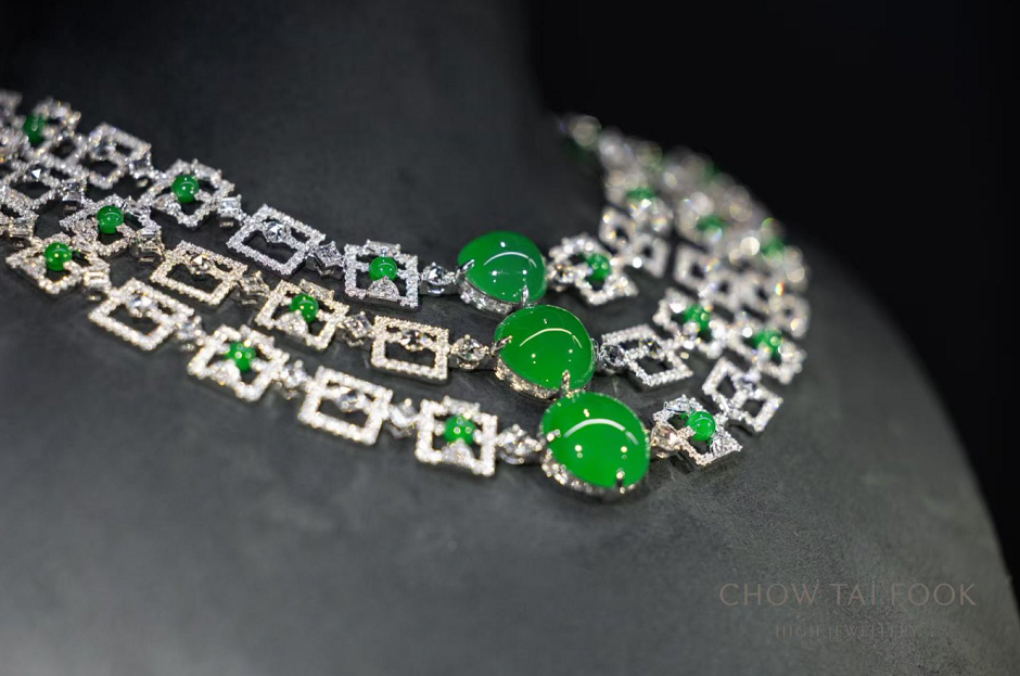 周大福高级珠宝系列在材质甄选方面坚守严苛标准、提供卓越品质保证,天然珍稀钻石及彩色宝石均采自全球闻名产地,部分作品更自如娴熟地应用与中华文明血脉紧密相连的东方材质,将鲜少用于高级珠宝的翡翠、足金融入珠宝创作,展现独特的华夏之美。