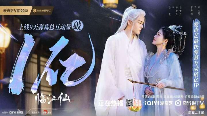 《临江仙》开播以来爱奇艺内容热度持续飙升,并霸榜灯塔、云合、德塔文、艺恩娱数、Vlinkage等多个榜单TOP1。随着日前“逐日剑出”“大婚日刺杀”等高能情节的播出,观众对剧情、角色、热梗的讨论持续高涨,不断破圈。《临江仙》上线9天弹幕总互动量破亿,成为爱奇艺最快弹幕互动破亿的IP。#没有三生三世只有三结三离#、#临江仙上一秒纯恨下一秒纯欲#、#临江仙我不允许任何人忤逆你#、#花如月的局中局骗中骗#等话题频频登上热搜热榜,成为2025暑期档开局的热议焦点。