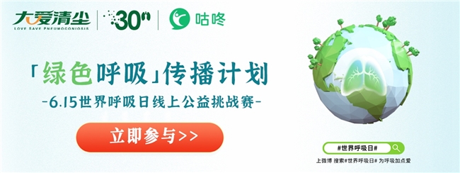 6月15日,世界呼吸日,大爱清尘联合咕咚共同发起的“「绿色呼吸」传播计划”线上公益挑战赛正式启动。即日起打开咕咚APP报名该活动,使用跑步/健走模式累计3天,每天单次完成6.15公里运动里程,即可获得官方电子奖章、证书,并有机会收到尘肺家庭儿童的画作周边回馈。该联合活动旨在用跑步运动的形式,呼吁公众关注呼吸健康,为尘肺病群体发声。
