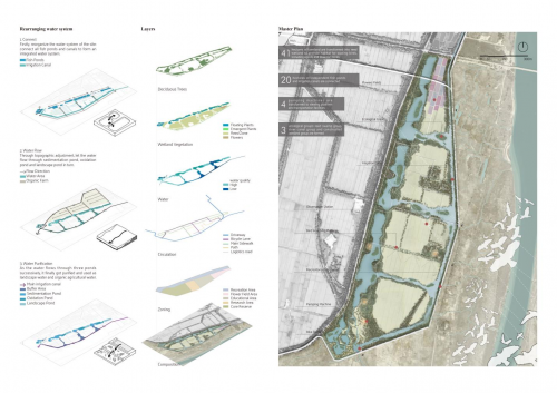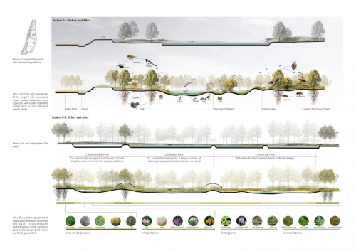 盘锦湿地项目是韩洁设计理念的集中体现。面对湿地水系被破坏、农业和工业污染严重等问题,她提出了一整套系统的生态修复方案。她通过科学手段查找污染源,恢复水流通畅,让湿地重新“呼吸”;同时,引入可以净化水质的植物,帮助改善土壤和水体环境。项目还运用了污染淤泥封存技术,帮助曾经荒废的鱼塘重新焕发生机。