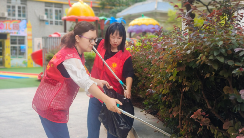 清晨,阳光透过嫩绿的树叶洒下斑驳的光影,空气中弥漫着花草的清新香气。“小燕子,穿花衣,年年春天来这里。”伴随着清脆悦耳的童音,一支支“红马甲”晃动着身影,开始了一天紧张而又忙碌的工作。