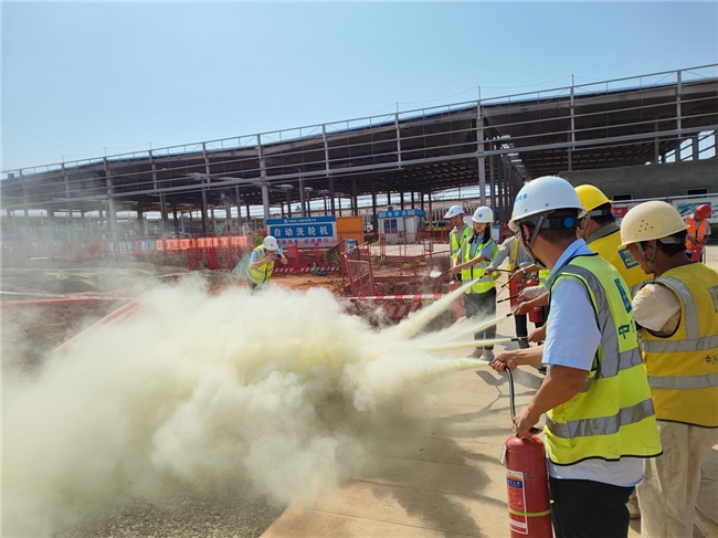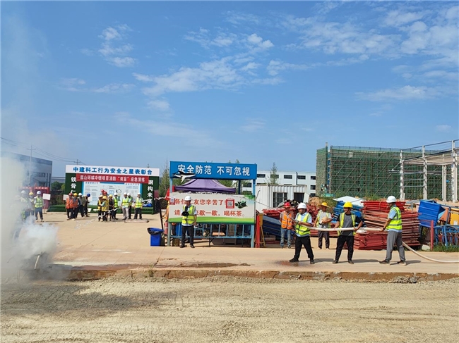 消防疏散应急演练--为推动安全疏散知识的普及,提升现场人员的紧急避险能力。项目部开展了“双盲”消防疏散应急演练活动,各应急救援队伍通力完成了应急启动、人员疏散撤离、火情控制、人员医疗救护、险情排除等演练科目。