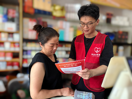 “陈老板,像这题烟草专卖零售许可新办申请材料不齐全的,让我们一起看看具体的做法有哪些。”志愿者刘志杰指导零售户一同参与线上答题。