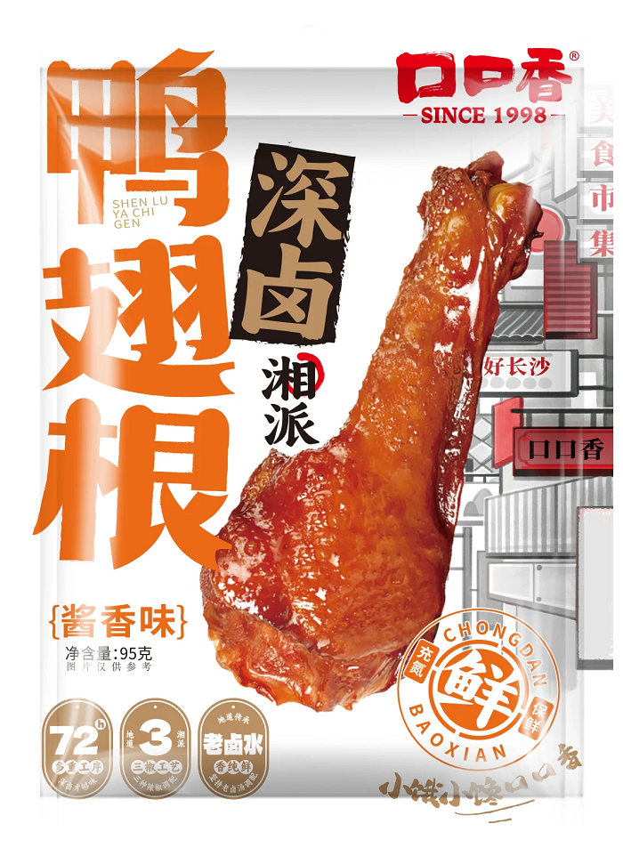作为深耕食品行业27年的“匠心企业”,口口香始终秉持“做放心食品,创健康生活”的初心,将传统匠心与现代技术深度融合。针对鸭翅根这一传统卤味细分品类,品牌历时多年研发,结合百年非遗卤水配方,通过精准控温、慢卤入味等技术,72小时,6大步骤,20道工序,打造连“骨头都入味的”地道湘味鸭翅根,成功定义“深卤鸭翅根”的风味标准。凭借稳定的品质与独特风味,口口香深卤鸭翅根迅速占领消费者心智,深受消费者喜爱。