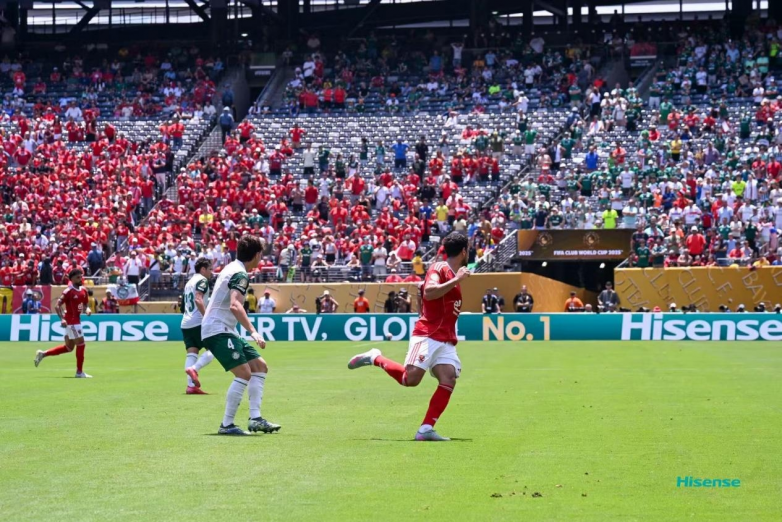 2025年国际足联俱乐部世界杯(下称“世俱杯”)赛场边的围挡上,熟悉的那抹海信绿,再次带着“第一”字眼的标语,硬控全球球迷的注意力。