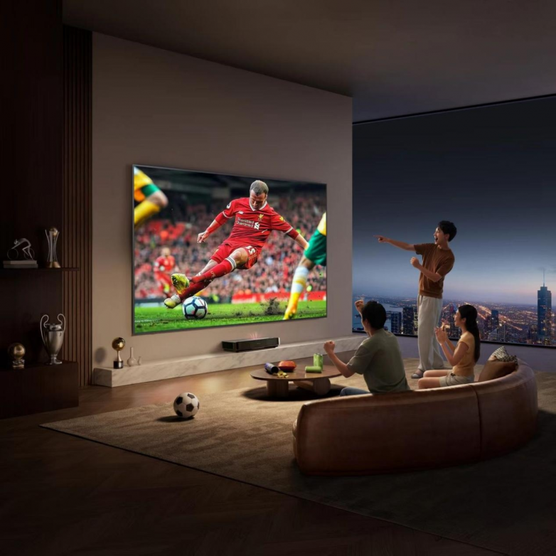以海信激光电视推出的探索X1系列、星光S1系列为例,探索X1 Ultra把IMAX影院同源的MCL39激光器与DMD控光芯片“移植”到家用电视产品上,加上纳米光谱选择屏Pro的应用,将全屏稳定亮度提升至1000nits,结合百吋巨幕、9.1.4声道屏幕发声等顶级配置,让居家客厅的观影体验达到顶峰。星光S1同为影院同源产品矩阵,搭载超广色域、立体声场与独立低音炮,满足不同用户的家庭观影需求。