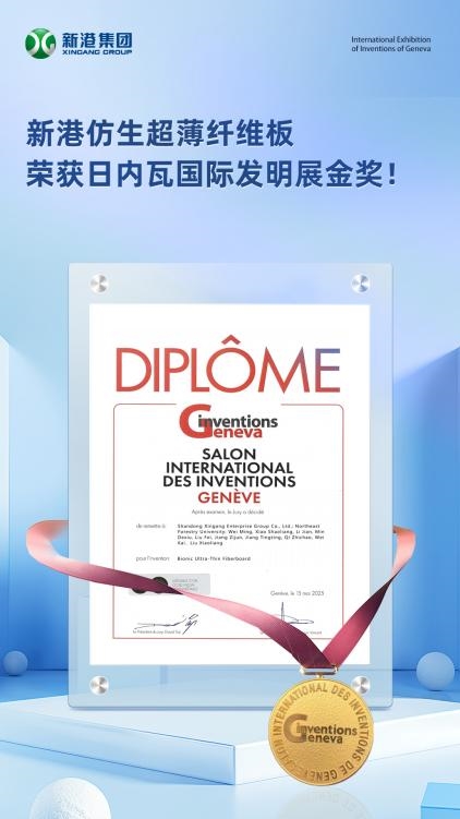 近日,由山东新港企业集团与东北林业大学联合研发的“仿生超薄纤维板”(Bionic Ultra-Thin Fiberboard),经过与全球40多个国家及地区的1000多参展项目的激烈角逐,最终斩获日内瓦国际发明展金奖,成为全球林业行业首个获此殊荣的企业。