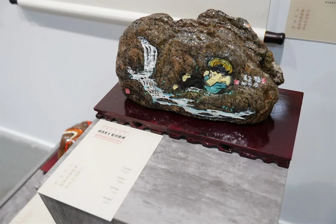 本次展出精心遴选共展出80余件精品佳作,堪称一场视觉盛宴,主要来自北仑区春晓教育集团、友直教育集团和浙江大学艺术与考古学院美术系的师生,涵盖大中小学生跨学段创作,艺术形式涵盖书法、篆刻、国画、石艺、掐丝珐琅、扎染、屏风画、农民画、连环画、蓝晒画等。