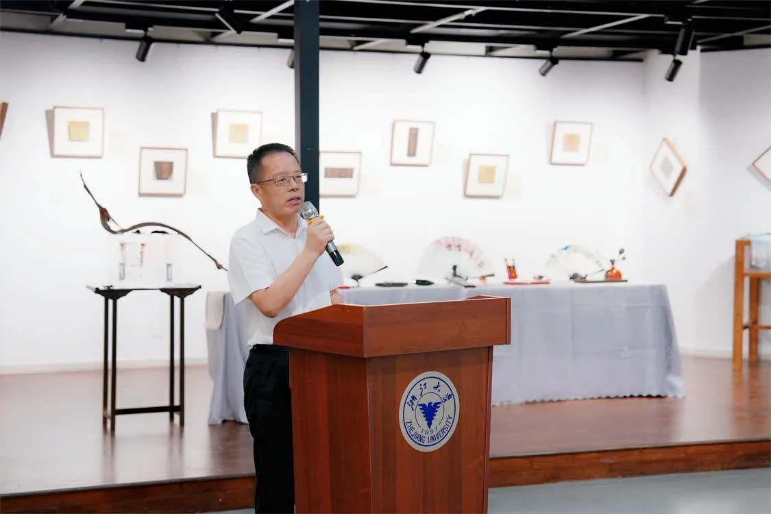 本次展览,是一次校地携手、共育美魂的生动实践。浙江大学艺术与考古学院副院长陈虹表示,此次活动是践行大学“服务地方发展”的使命、推动优质教育资源下沉的具体行动。她阐述了高校的使命,要给予精准支持,赋能地方美育发展,激发师生艺术潜能,努力构建起“高校—中小学”美育共同体,让美育的种子在校园内外生根发芽。