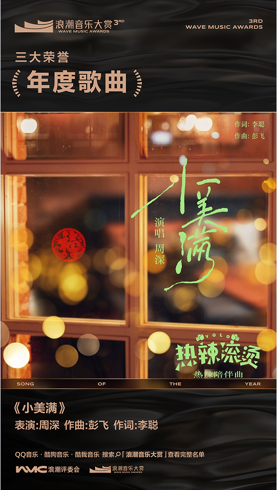 华语音乐年度荣誉揭晓 周深《小美满》获得年度歌曲