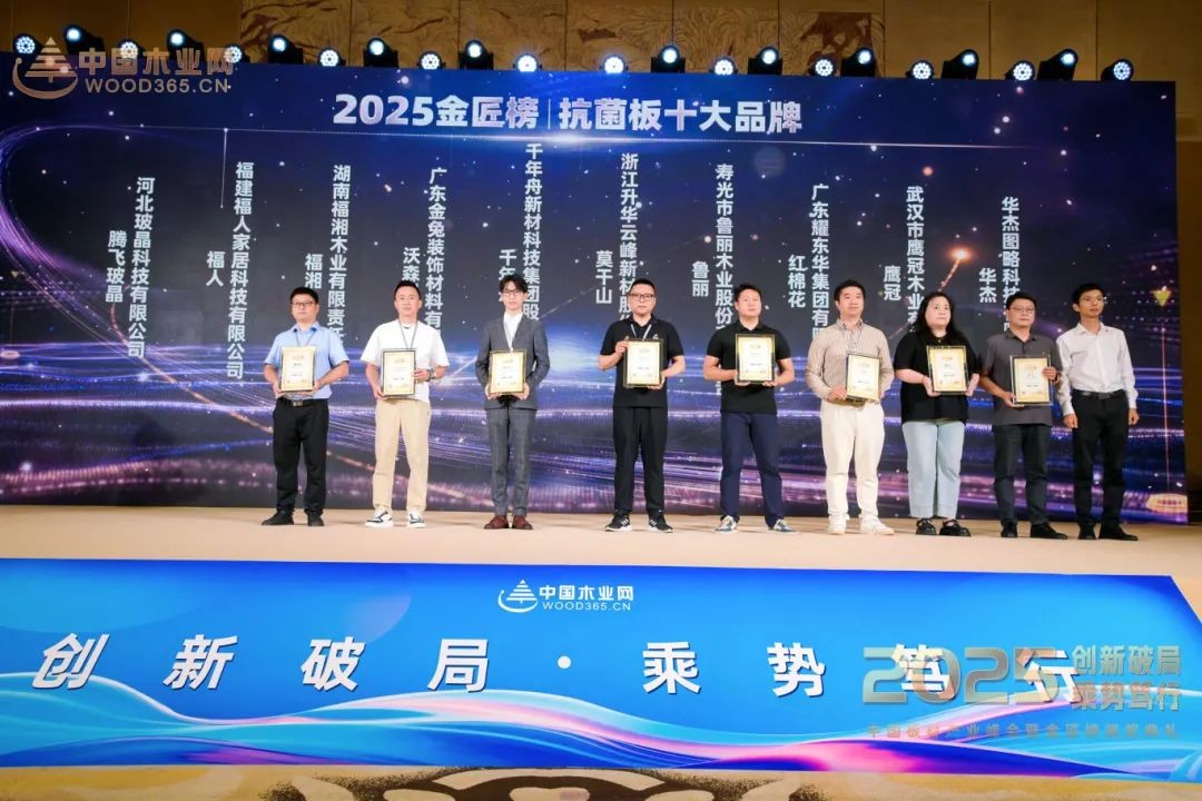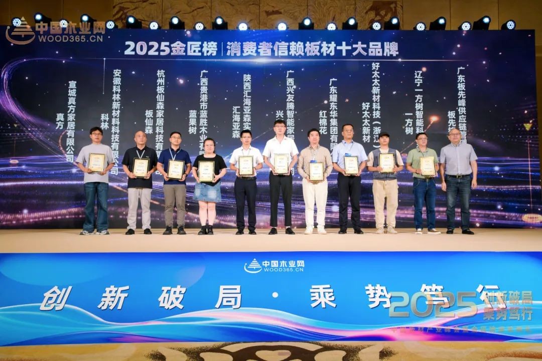 2025年6月21日,“2025中国板材产业峰会暨金匠榜颁奖典礼”在杭州圆满落幕。红棉花板材凭借过硬的科技实力与市场口碑,一举摘得 “抗菌板十大品牌” 与 “消费者信赖板材十大品牌” 双项殊荣。耀东华集团副董事长曾劲翔先生登台领奖,台下数百位行业专家与产业链代表共同见证了这一高光时刻。