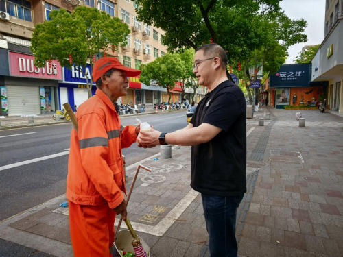 环卫工人老张接过这份意外的节日礼物,惊喜又感动:“这粽子很香,用袋子包着都能闻到香味。袋子里还放着茶叶蛋,过节的氛围很浓厚呢!”