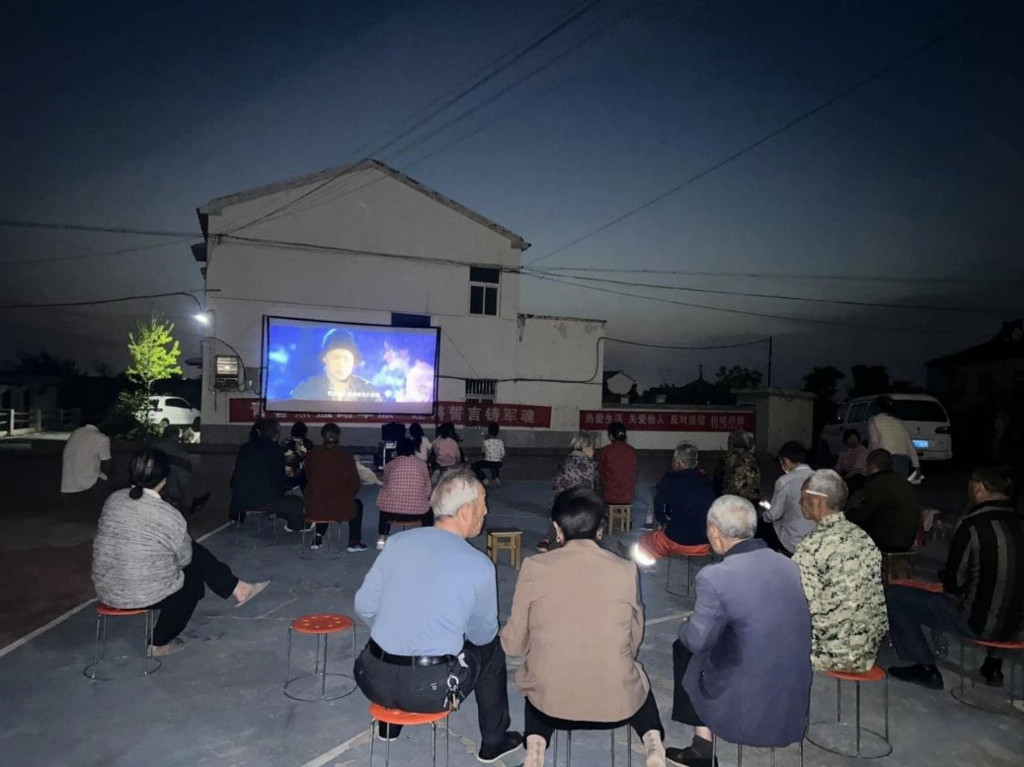 傍晚时分,村民们拿着观影卷早早带着小板凳来到广场,孩童们追逐嬉戏,老人们摇扇闲谈,现场洋溢着浓浓的烟火气。晚7时,影片《生死突围》准时放映,银幕上的光影与夜空中的繁星交相辉映,孩子们兴奋地模仿电影中的英雄人物,勾勒出一幅温馨动人的乡村夜景。“在家门口就能看电影,带着我的小孙子一起,还不花钱,附近几个村的都一起来看了,几十年没看过这么热闹的电影了。”村民王奶奶感慨道。