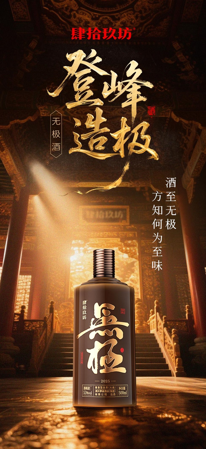 “无极”二字,取自《道德经》“复归于无极”,既是肆拾玖坊对酱酒“天地同酿、岁月流金”的礼赞,亦是对饮者“心怀寰宇,自在无界”的精神共鸣。