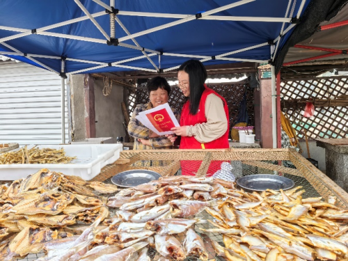 图为“香溢”志愿者向渔民普及民法典。郑婷婷/摄