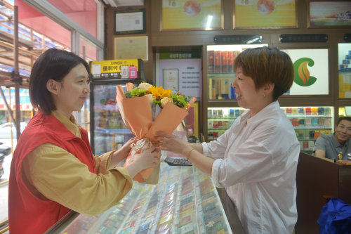 “平时忙生意,都快忘了母亲节,今天意外收到花感觉特别温暖!”一名收到花的女性零售户说道。此次活动不仅为女性零售户送去了节日的惊喜与祝福,更增进了与零售客户之间的情感交流,让客我关系在温馨的氛围中进一步升温。
