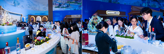国窖1573是中国白酒鉴赏标准级酒品,由1573国宝窖池群和泸州老窖酒传统酿制技艺“活态双国宝”酿制。天津之夜现场,国窖1573品牌展区浓香四溢,宾客云集。中外嘉宾驻足观看,共同品味国窖1573、国窖1573中式特调酒,还通过现场展示及讲解,了解活态非遗酿造技艺的传承有序,感受中国白酒文化跨越千年的绵长悠远。
