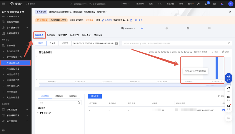 ● 日志留痕,安全可追溯:病毒查杀后,控制台“终端安全日志-病毒查杀”模块会生成记录,构建“检测-处置-审计”完整闭环,便于事后分析。