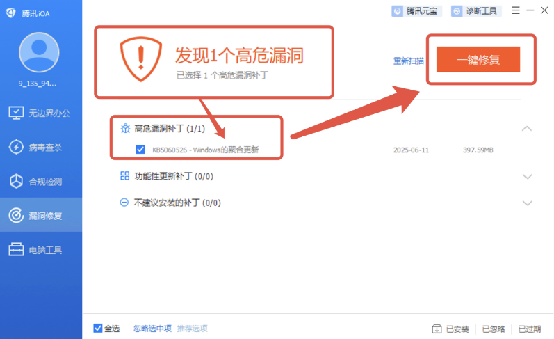 ● 智能检测,一键修复:iOA控制台提供集中的漏洞修复功能,管理员可以通过控制台轻松扫描和修复所有终端的漏洞,实现高效的安全管理。